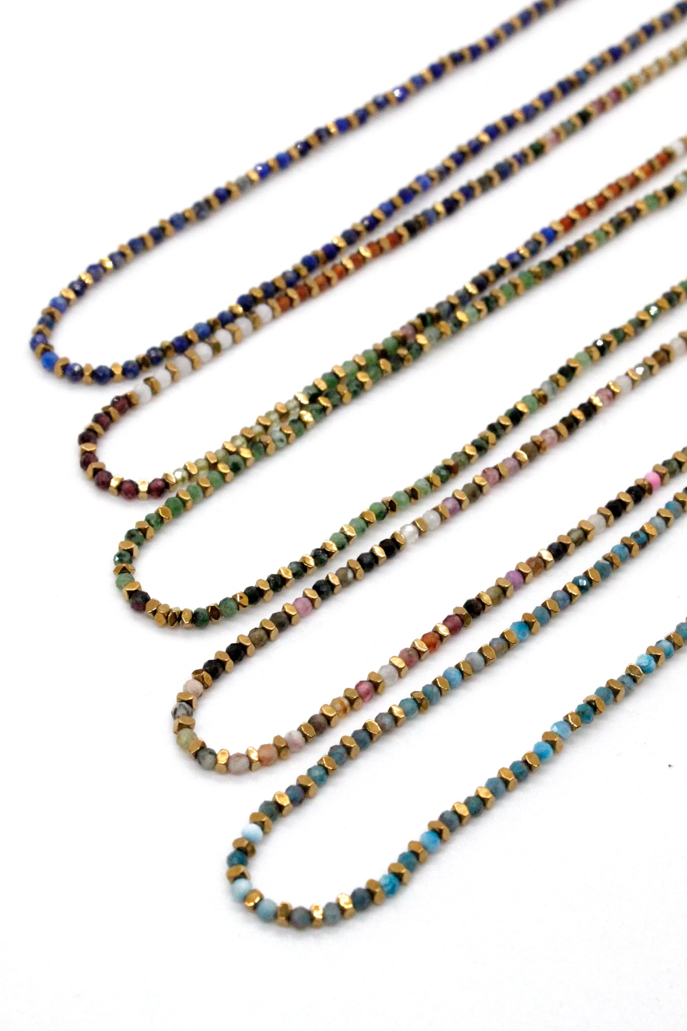 Skip to contentMini Gold Nugget and Faceted Stone Single Strand Necklace