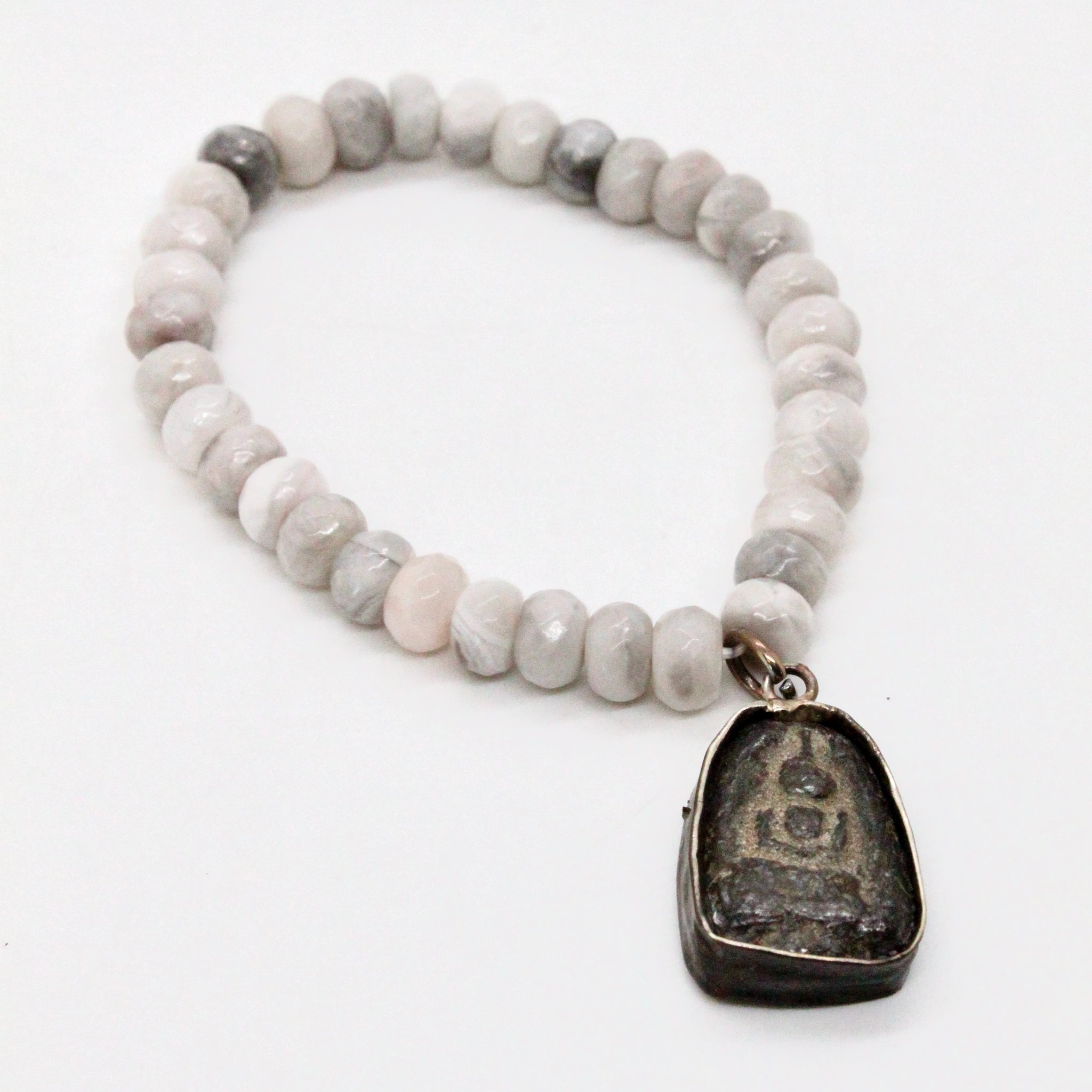 White Lace Agate Buddha Bracelet