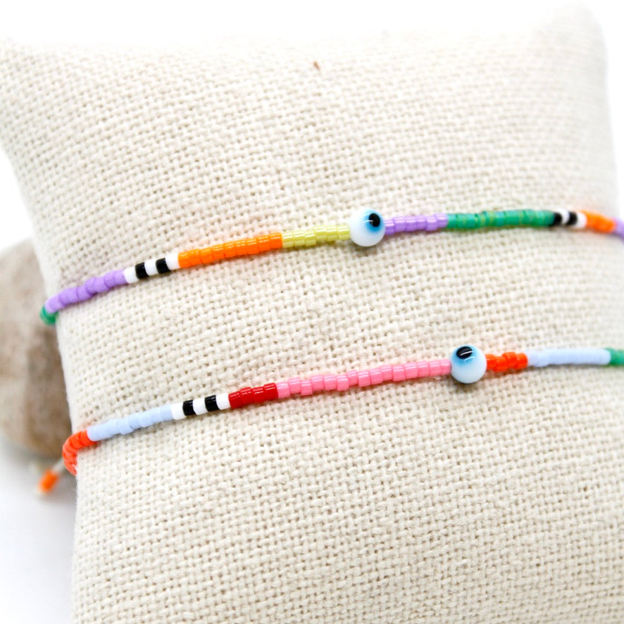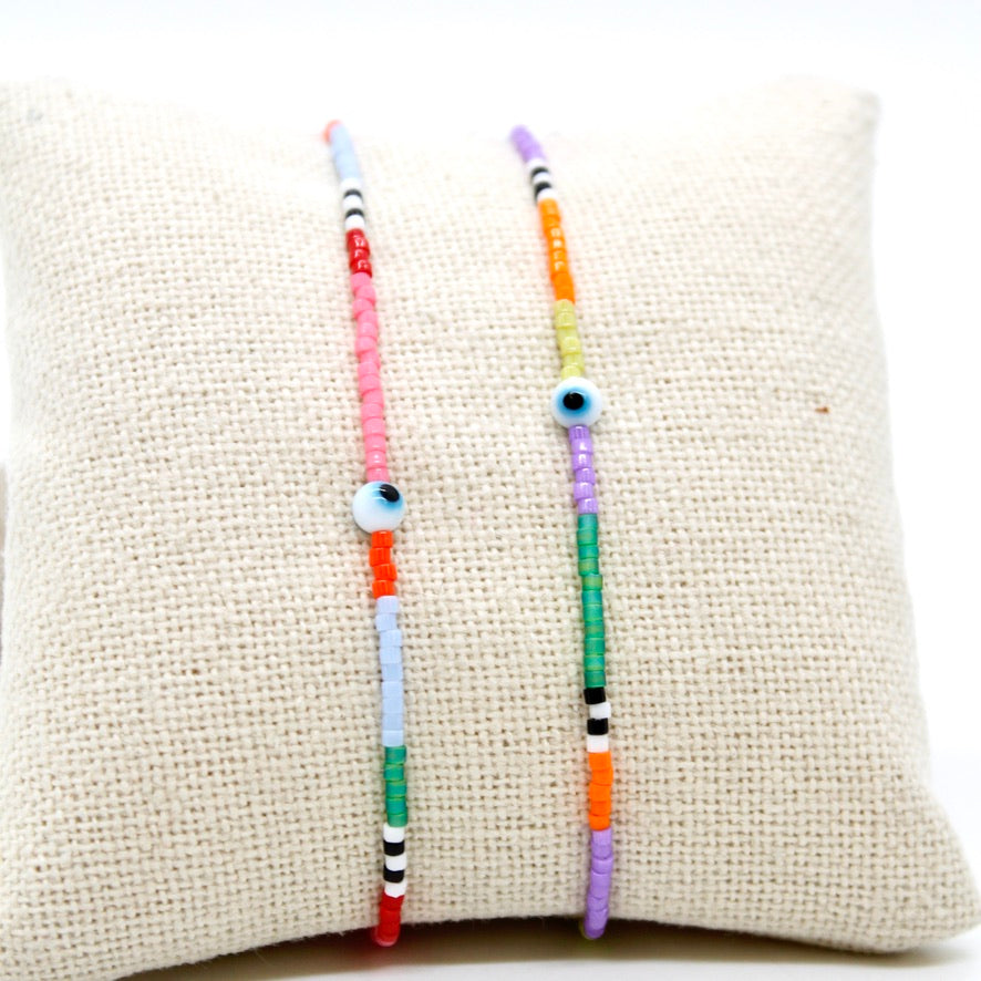 Two Evil Eye Colorful Seed Bead Bracelets - B8-034