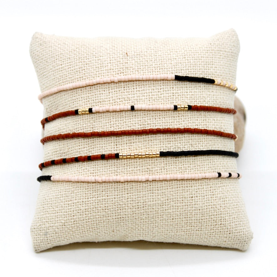 Necklace or Bracelet Seed Bead Cream, Rust and Black -N8-040