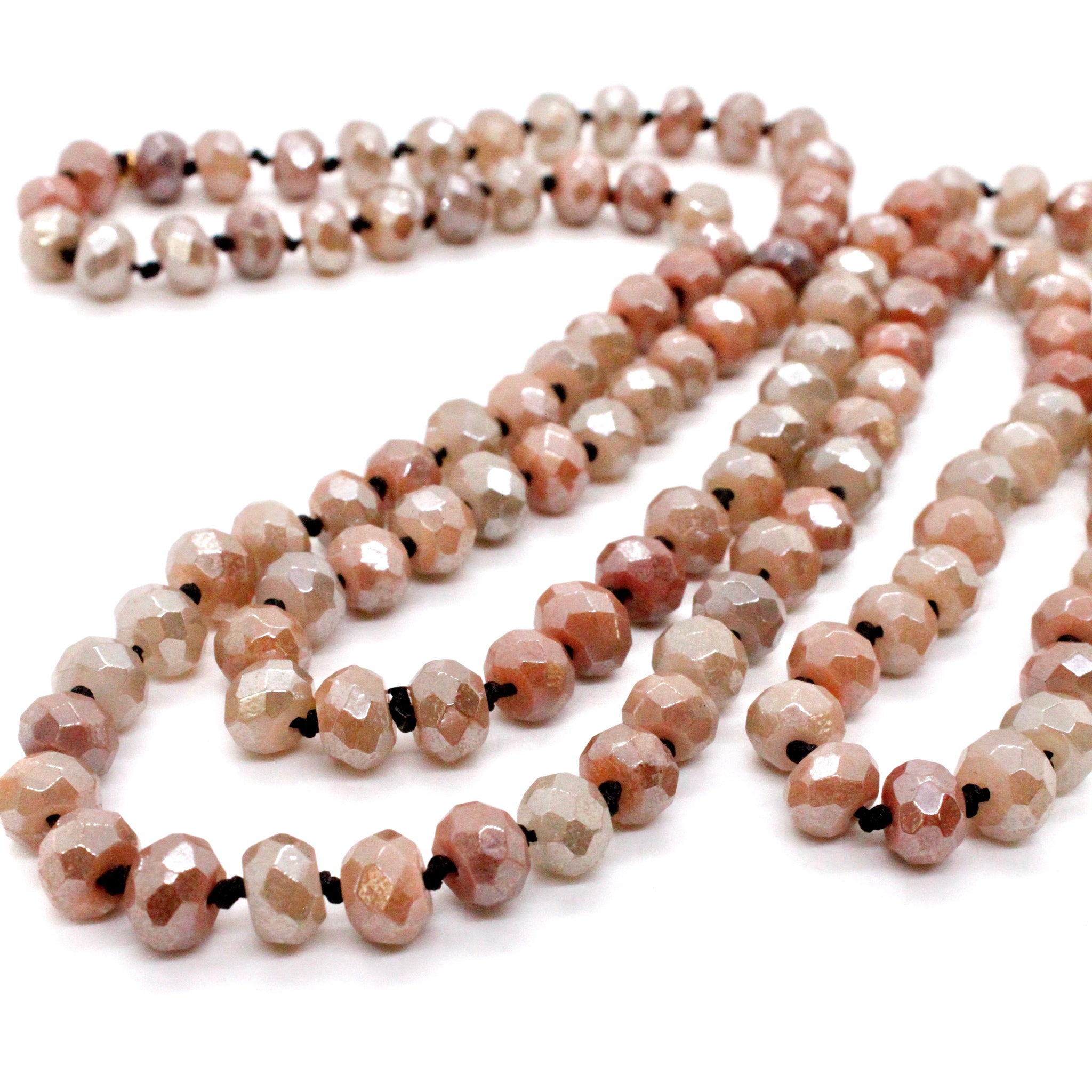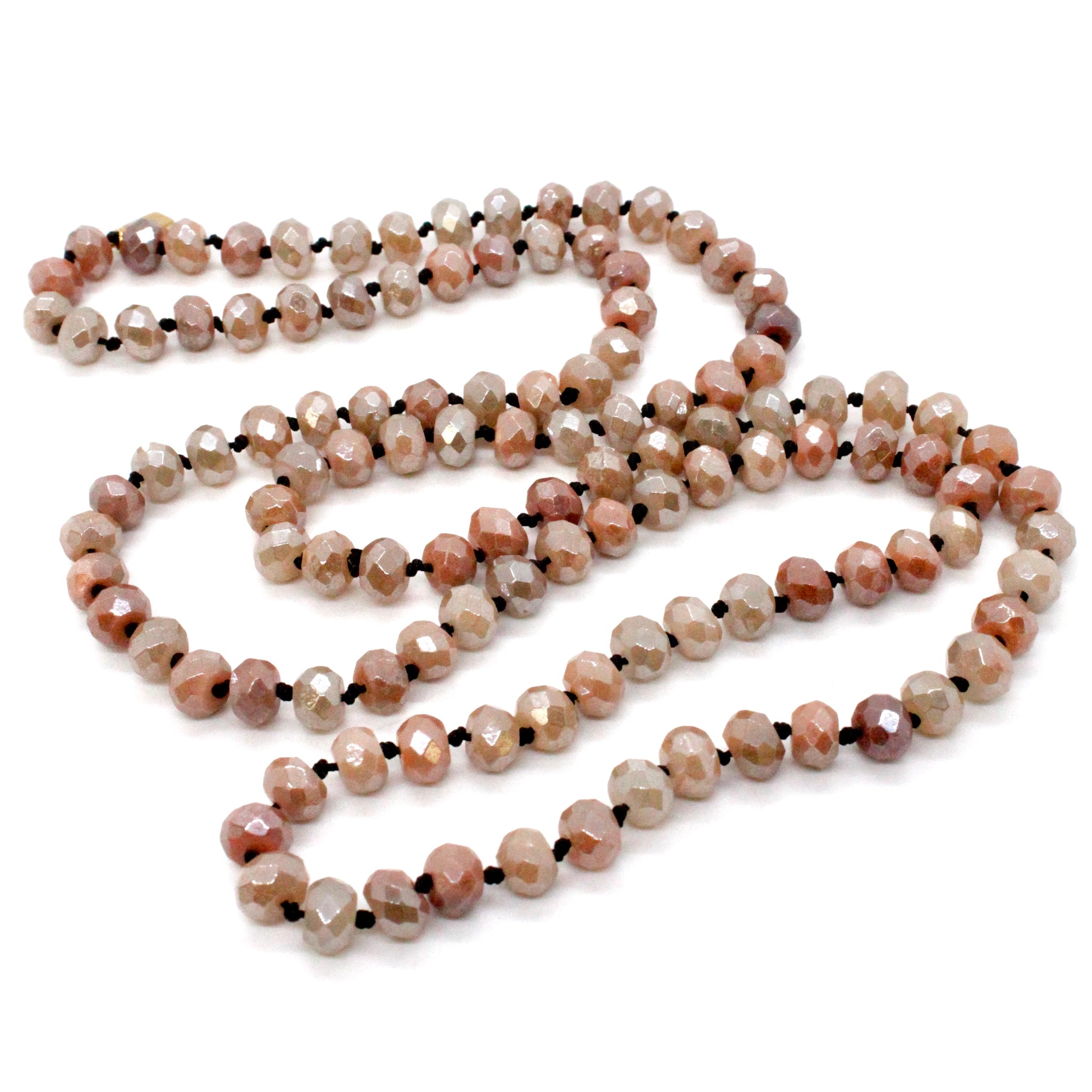 Hand-knotted long necklace strand.