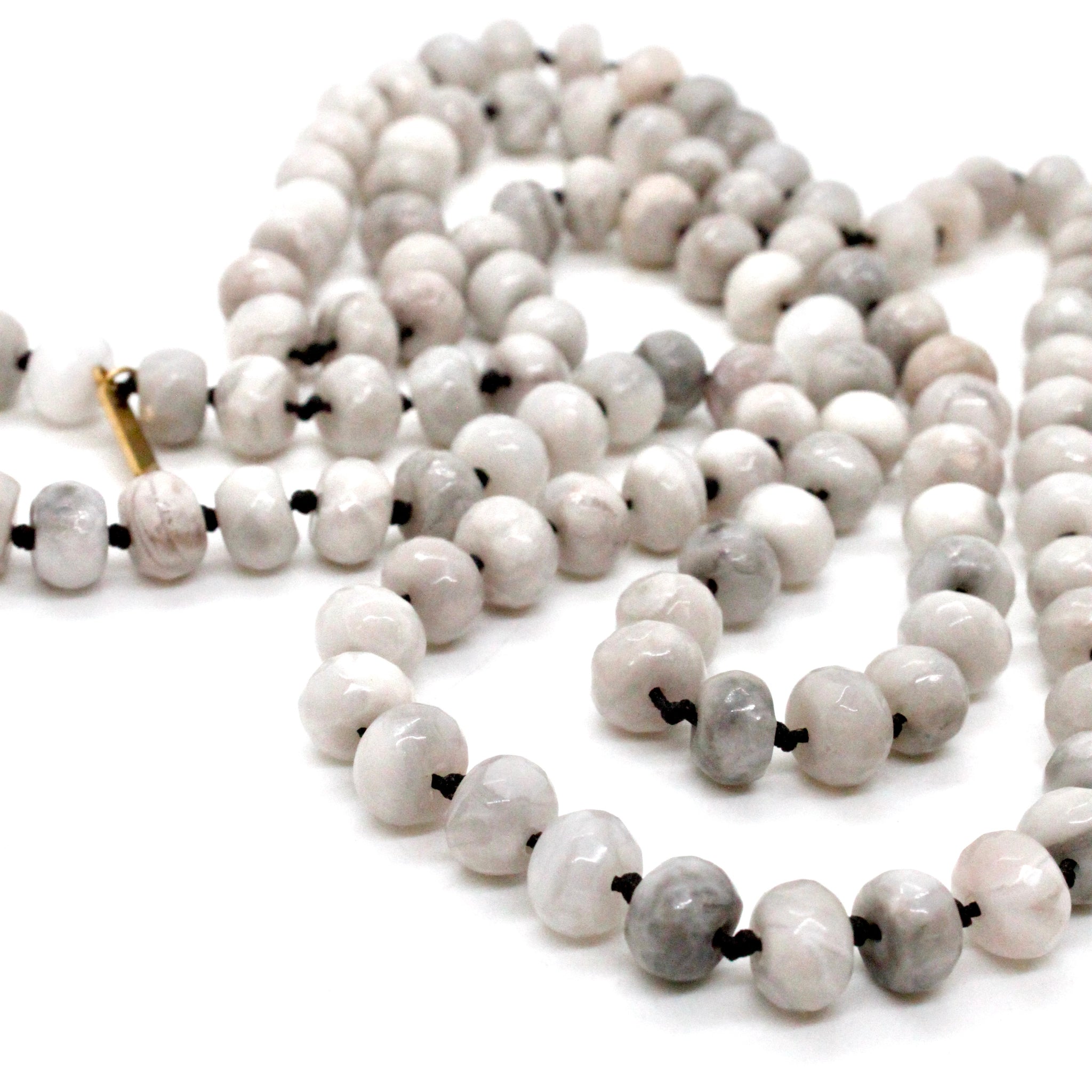 Hand-Knotted Long White Agate Bead Necklace - NL-WLA