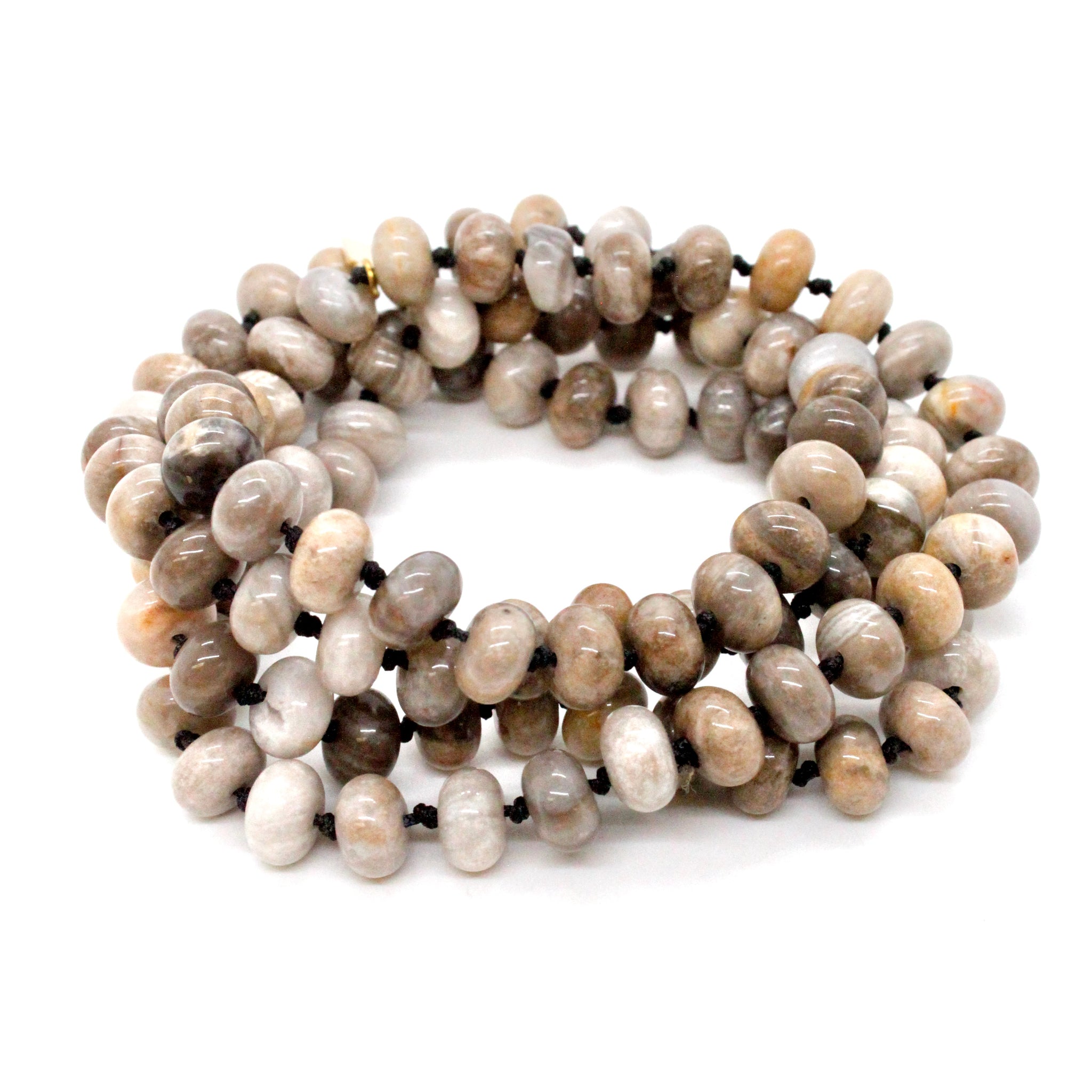 Hand-knotted long necklace strand.