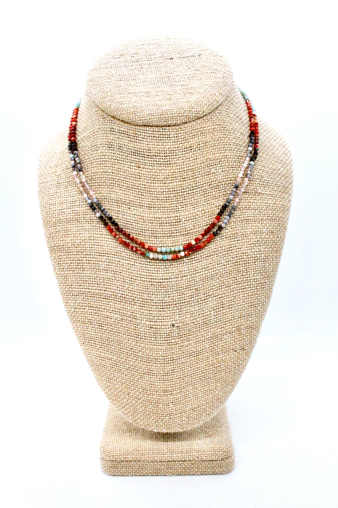Skip to contentMini faceted semi precious stone long necklace, can be wrapped twice to wear short.