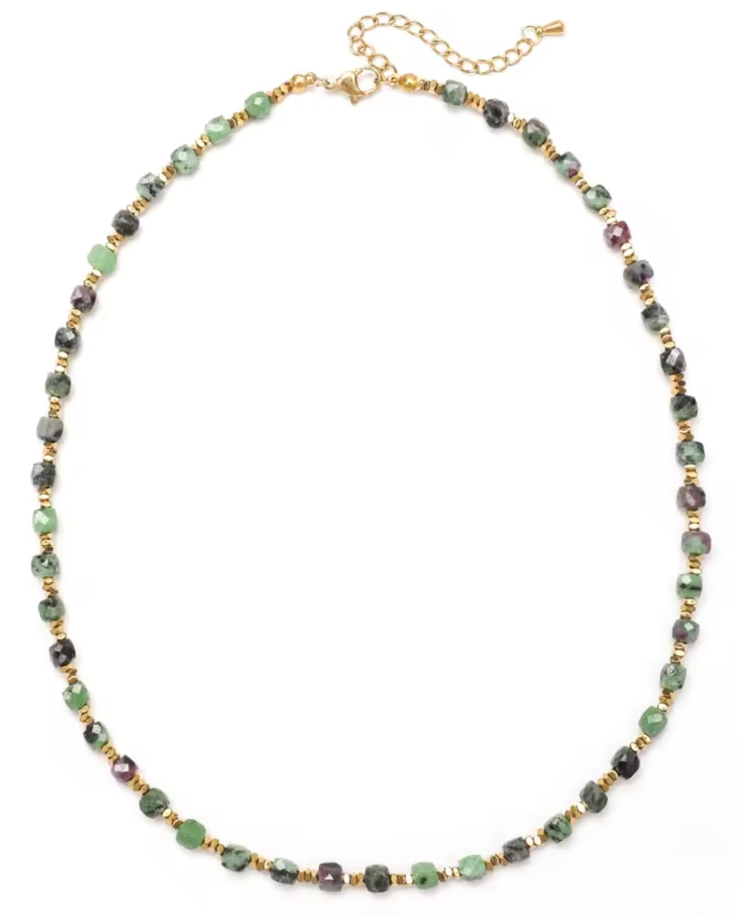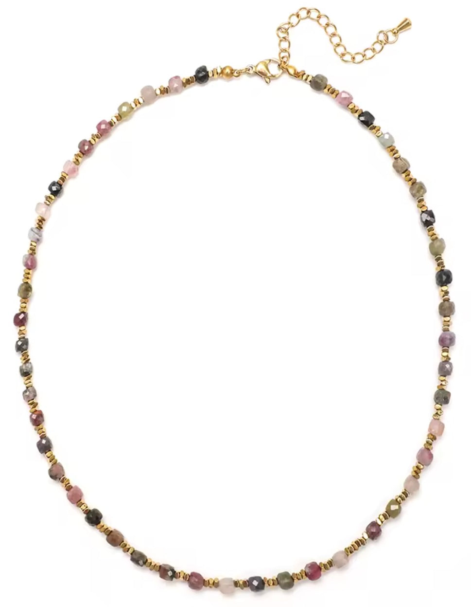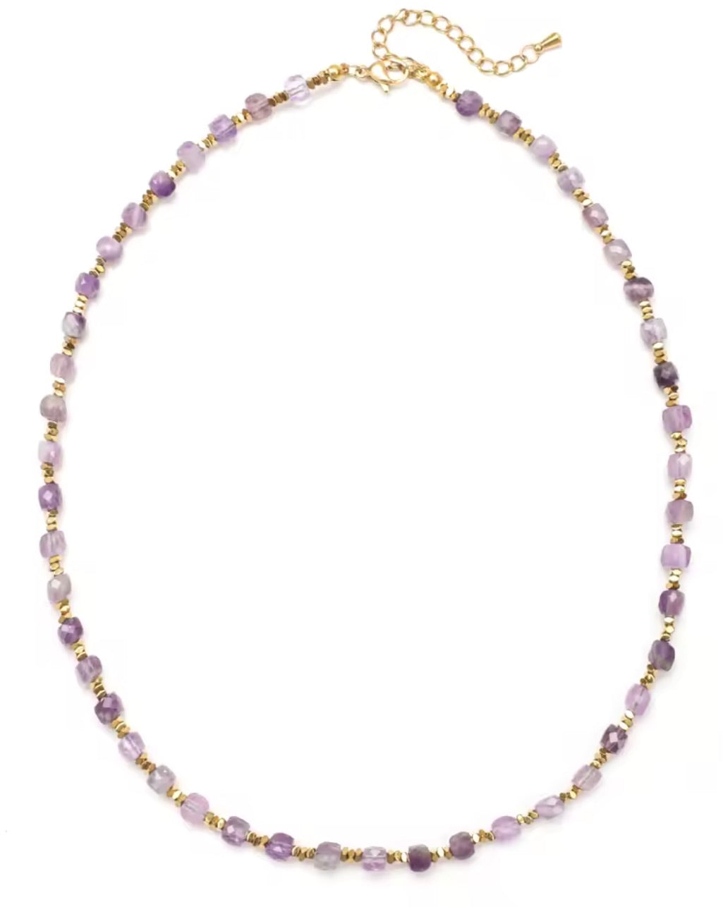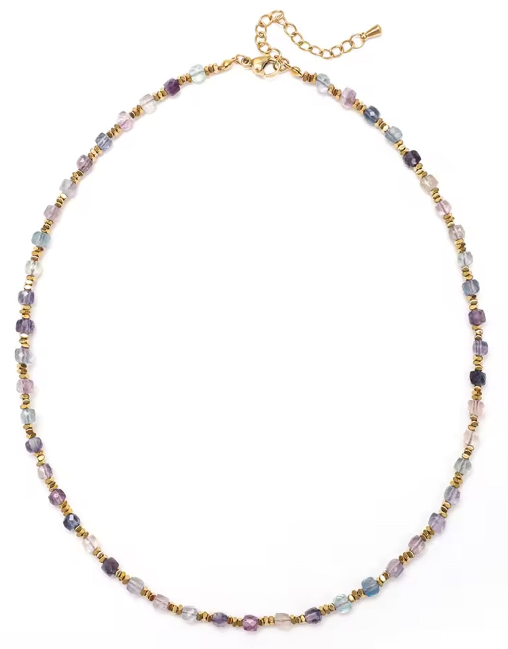 Simple Semi Precious Stone and 24K Gold Plate Necklace